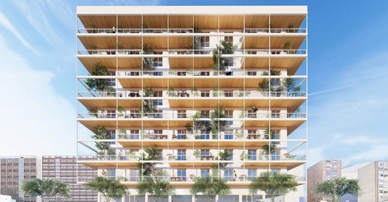Este será el material principal de los dos bloques en el distrito de Sant Martí, uno de los cuales se convertirá en “el edificio de madera más alto” de Catalunya: ambos sumarán las 82 viviendas adjudicadas a Sorigué por el Instituto Municipal de la Vivienda y Rehabilitación (Imhab).